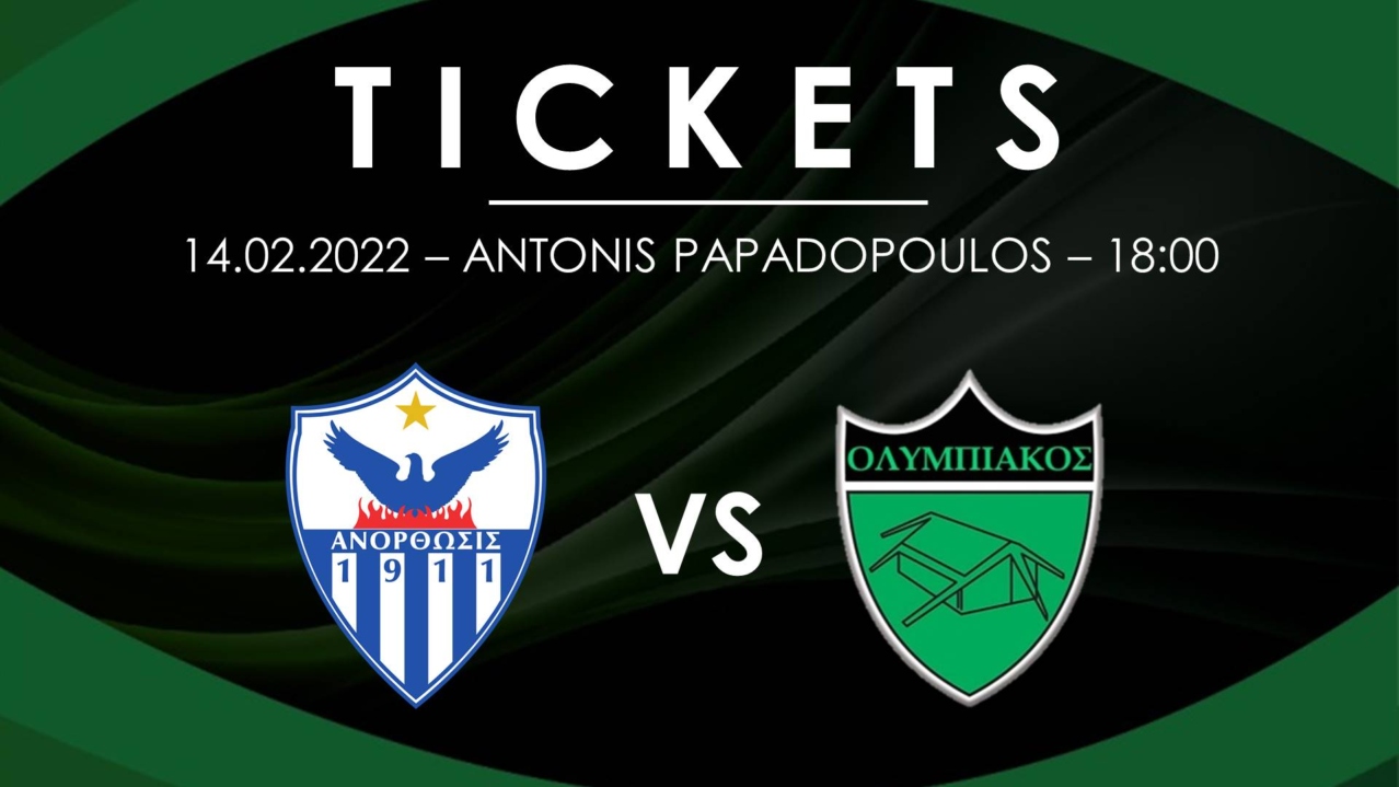Ο Ολυμπιακός Λευκωσίας ενημερώνει ότι έχει ξεκινήσει η διάθεση εισιτηρίων για τον εκτός έδρας αγώνα της ομάδας μας για την 21η αγωνιστική, με αντίπαλο την ομάδα της Ανόρθωσις Αμμοχώστου στο Στάδιο Αντώνης Παπαδόπουλος (Δευτέρα 14.02.2022 - 18:00).