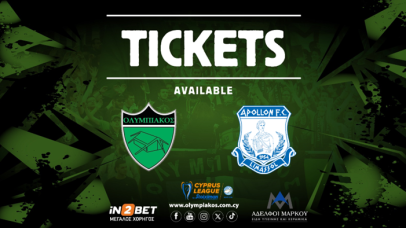Ο Ολυμπιακός Λευκωσίας ανακοινώνει την έναρξη της προπώλησης των εισιτηρίων για τον εντός έδρας αγώνα της 8ης αγωνιστικής του Πρωταθλήματος Cyprus League by Stoiximan 2025-2026, απέναντι στον Απόλλωνα Λεμεσού, που θα διεξαχθεί στο Στάδιο ΓΣΠ, το Σάββατο 25 Οκτωβρίου…